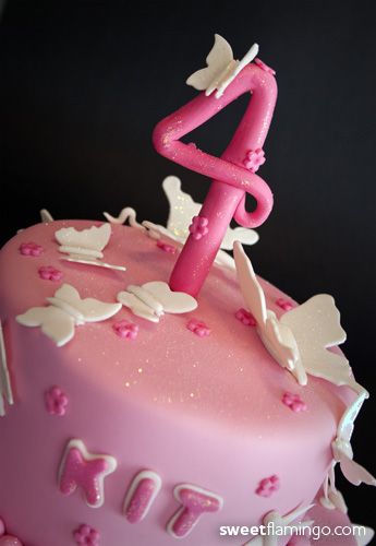 Little Miss Katherine (“Kit“) turned 4 this week. For her special day this whimsical cake features the cutest little “porcelain” butterflies & bugs, and enough sparkles to make any little girl smile!