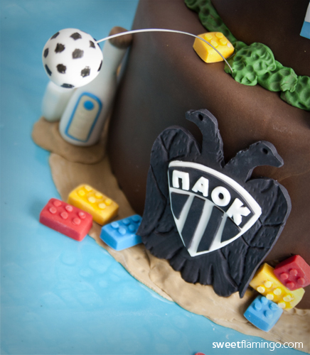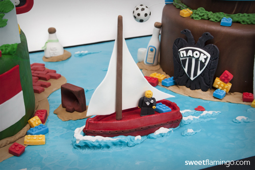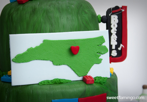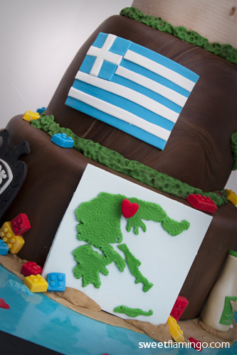 Loves travels across oceans. George from Thessaloniki, Greece, left home to come to the states for school. Little did he know that he would soon meet the love of his life, Teri! She wanted to surprise George with a groom’s cake to depict all his favorites of home, as well as the story of meeting his bride to be! We did our best to include every important detail from the White Tower in George’s hometown, favorite football (soccer) team, love of sailing – to coming to North Carolina, attending North Carolina State University, meeting Teri at Bogart’s, and of course falling in love!