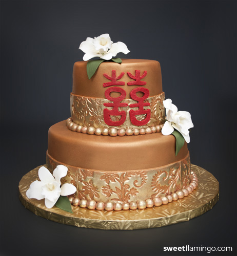 Pallas & Michael’s wedding is fast approaching! This invitation inspired cake was created using rich color & metallics for the couple’s recent shower.