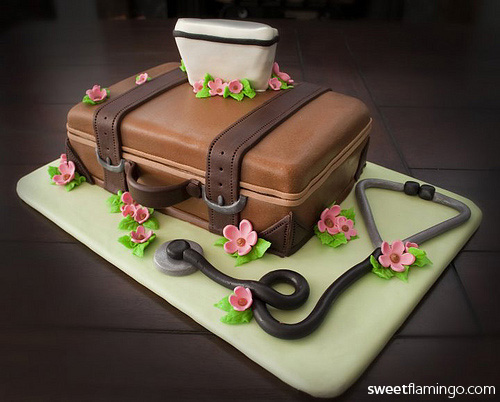 This cake was created for a combination Birthday and “new adventure” in life. A nurse decides to be come a traveling RN.