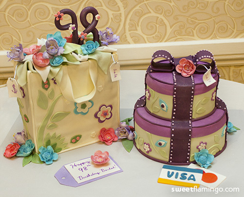 These cakes were created for a 98th Birthday celebration, and this young lady LOVES to shop!