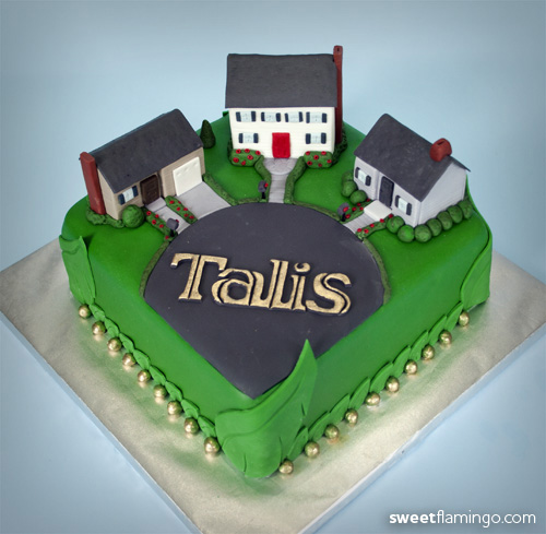 Landscape maintenance company TruGreen & Talis Property Management recently celebrated their business venture with this awesome cake. The cake featured a detailed residential setting, the TruGreenleaf” logo, the Talis logo, and gold accents all created from sugar!